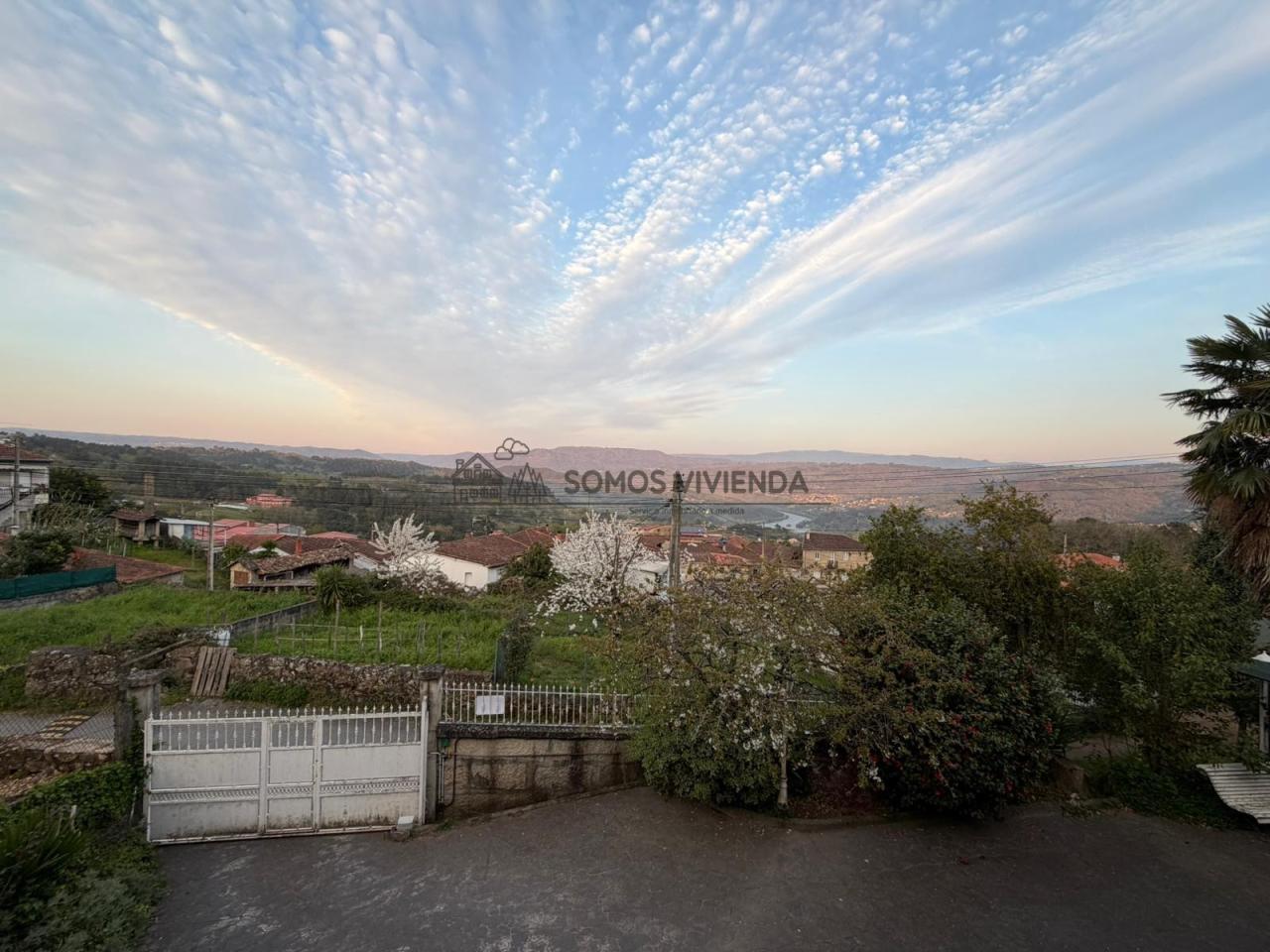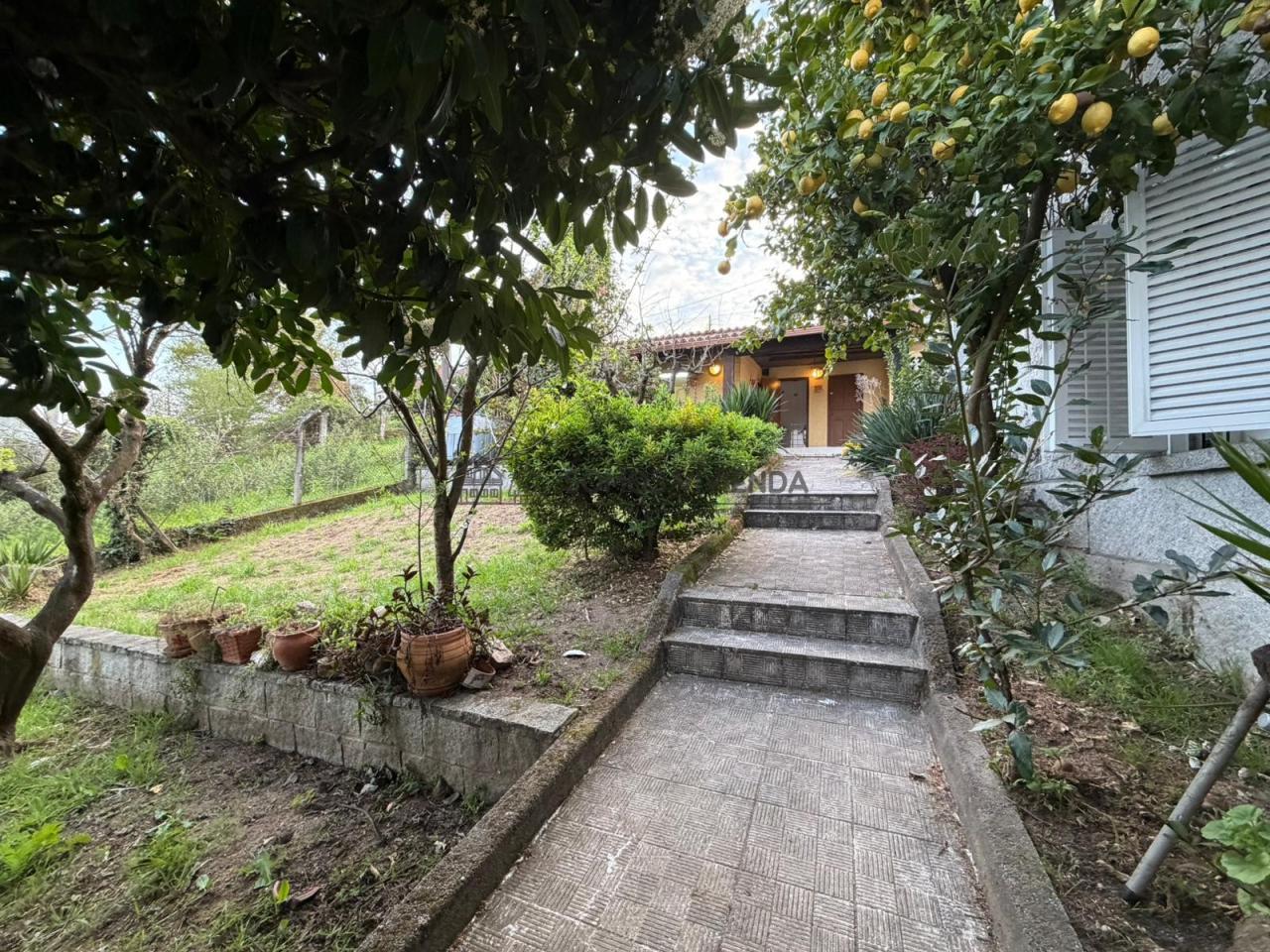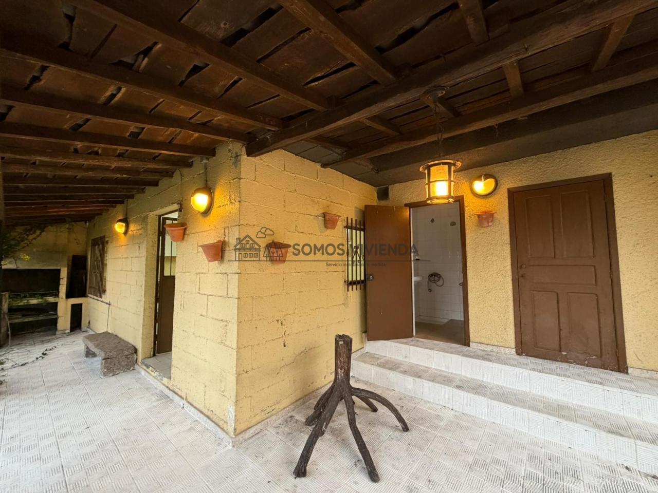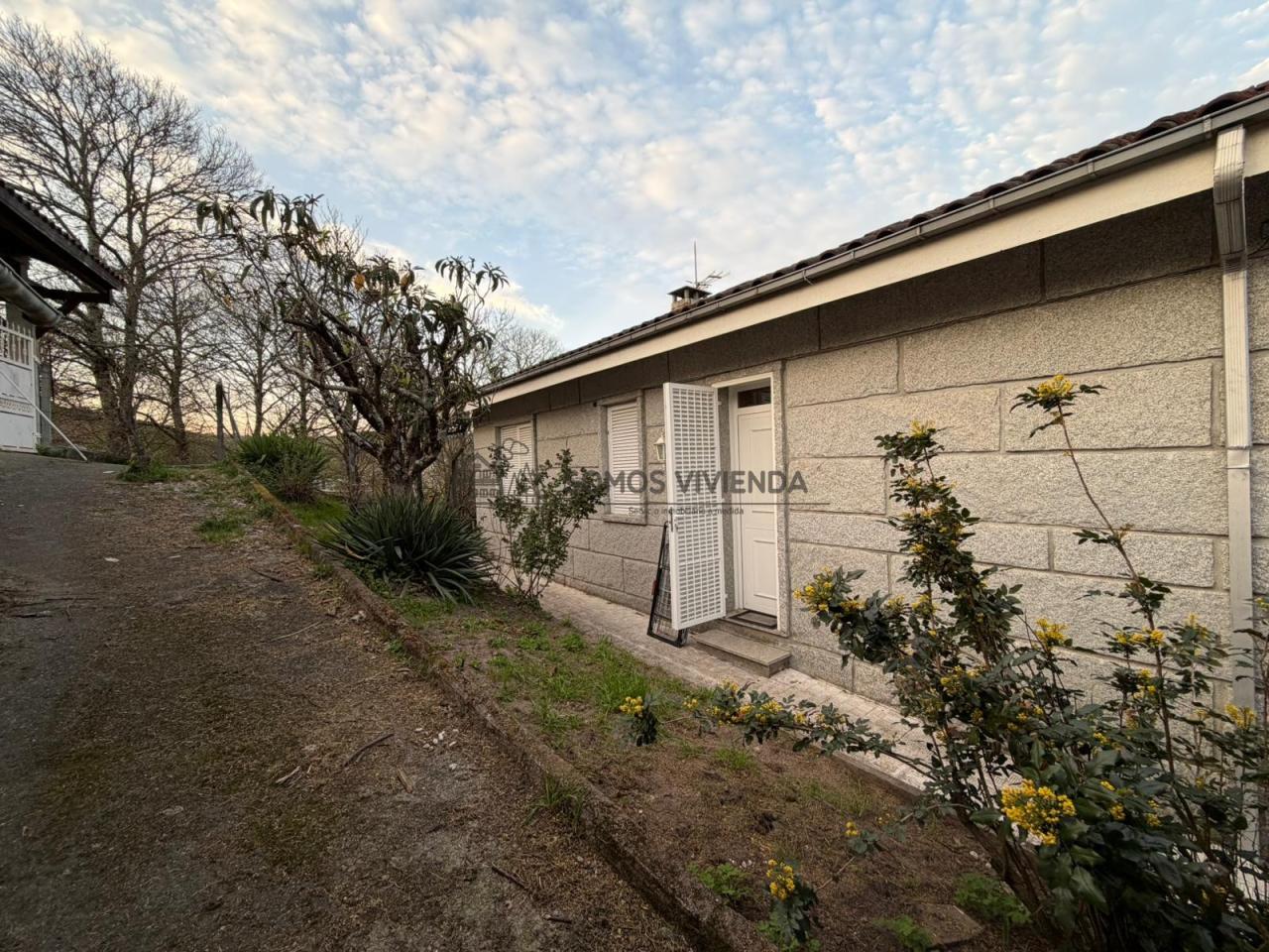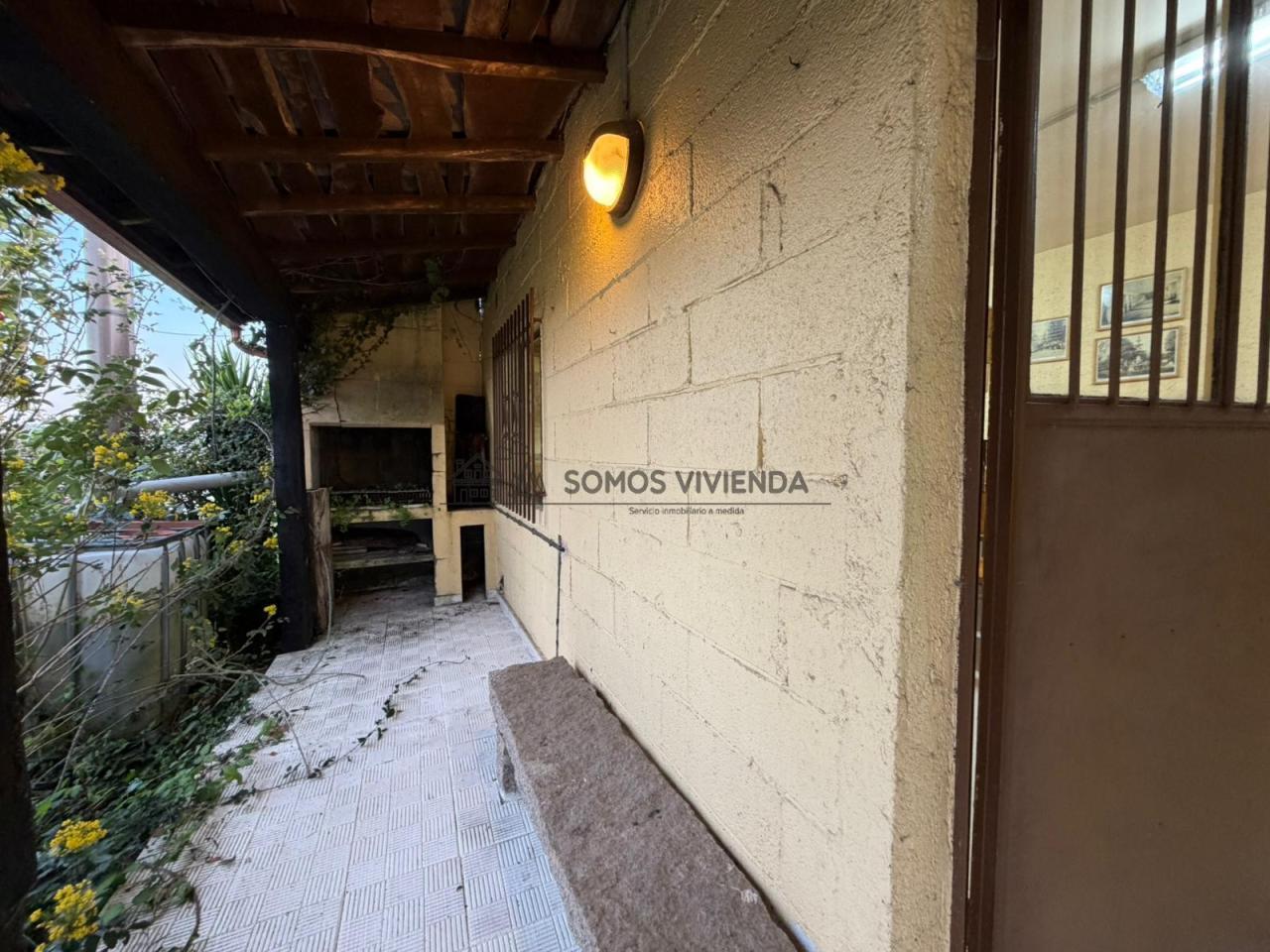 Chalet en venta situado en Sobral, a 4 km de la Avenida de Santiago y a tan solo 1 km de una parada de autobús urbano. La propiedad se asienta sobre una parcela de 789m² que cuenta con pozo propio. El terreno presenta una ligera pendiente y está completamente cerrado con muro de piedra y portón metálico.