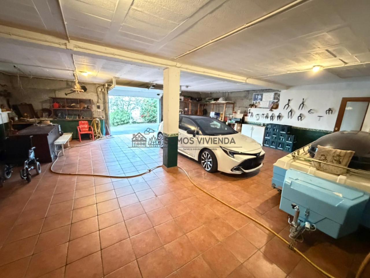 En la planta baja dispone de un garaje con capacidad para 3-4 vehículos y 2 bodegas.